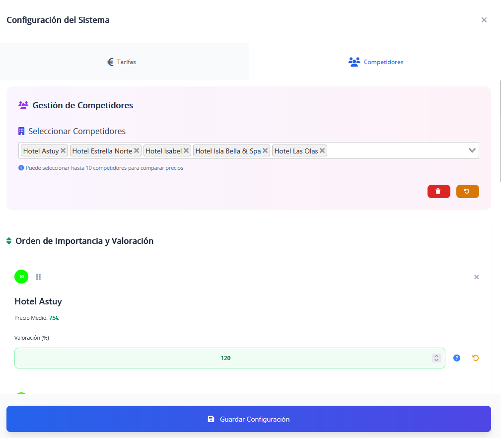En esta pestaña se gestionan los competidores con los que se comparan tus precios.