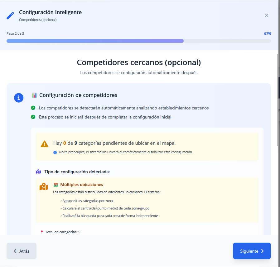 En este paso el sistema puede sugerir y asociar establecimientos competidores de forma automática.