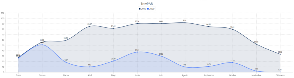 The TrevPAR, an acronym for Total Revenue per Available Room, is the average of the rooms productivity. It is the result of dividing the total income of the establishment by the total number of available rooms.